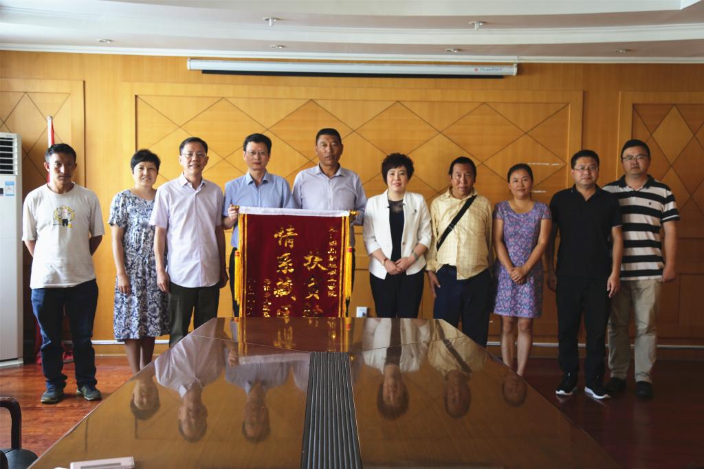 9月2日,学院对口帮扶点壤塘县吾依乡修卡村村长卓木甲受吾依乡人民政府委托,到学院敬献锦旗,感谢学院给予修卡村的大力帮扶,特别感恩学院在教育扶贫捐资助学方面给予的支持,修卡村2名学生被我院2018级“9+3”护理专业录取为2018级新生。学院党委书记江涛、院长张先庚、党委副书记张志林等领导与修卡村一行进行了座谈。